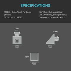 Quick Attach Tie Downs For Anchoring/Bolting Shipping Container To Cement/Rock Floor (2 Pack)